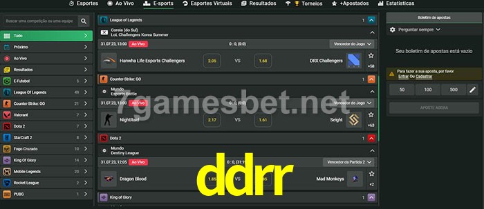 O ddrr oferece uma grande seleção de opções de apostas em e-sports com probabilidades competitivas